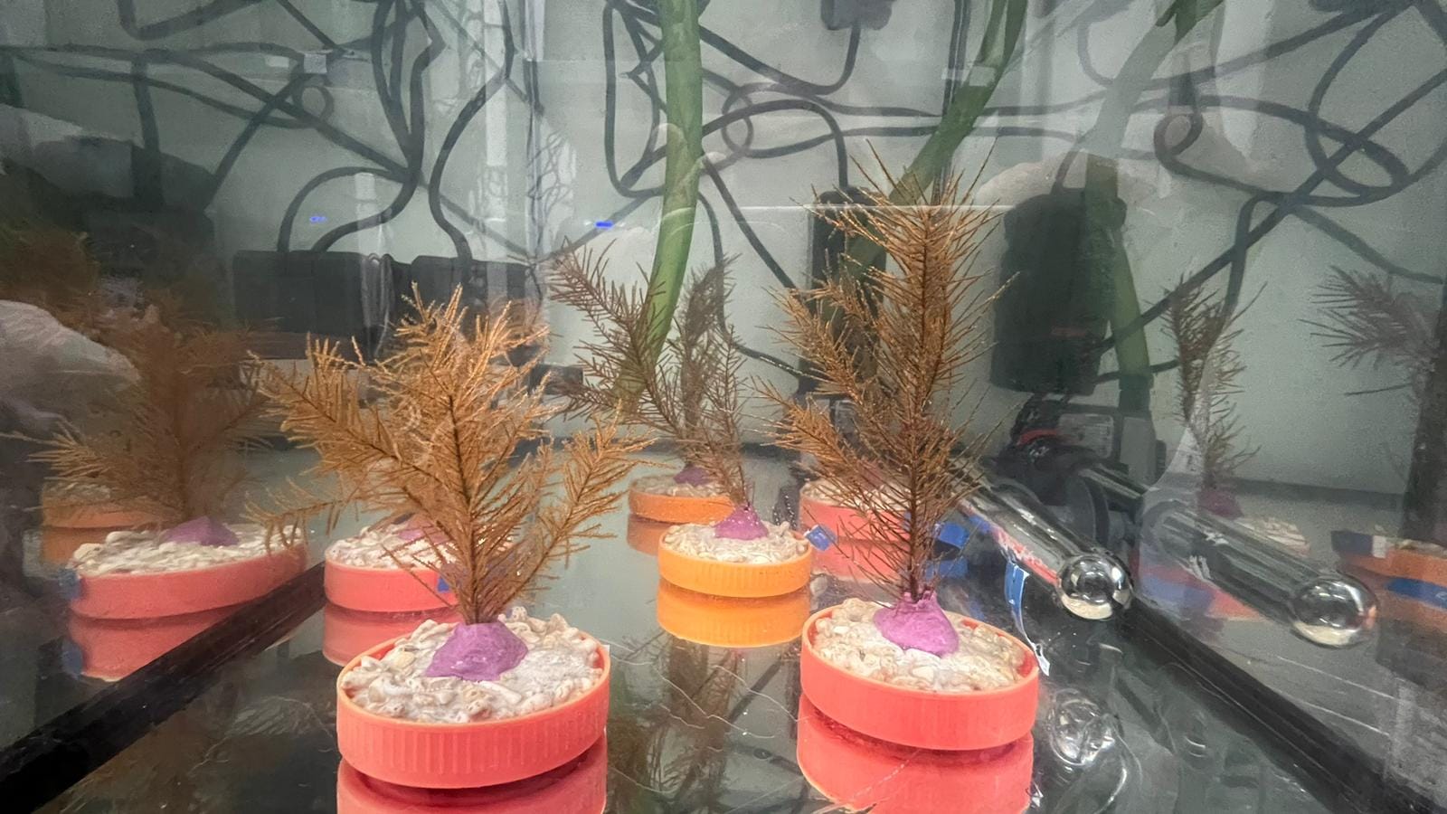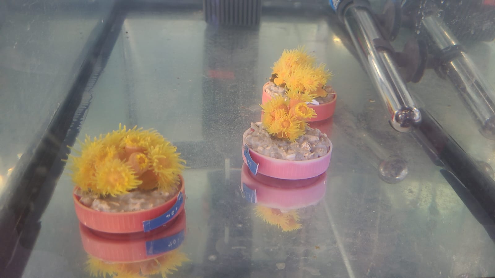 Durante mis prácticas colaboré en un experimento sobre cómo puede afectar el cambio climático a las poblaciones de coral negro (Antipathella wollastoni) en Canarias. Más adelante participamos en otro estudio parecido sobre el coral copa naranja (Tubastraea coccinea), que además es una especie invasora en el archipiélago.