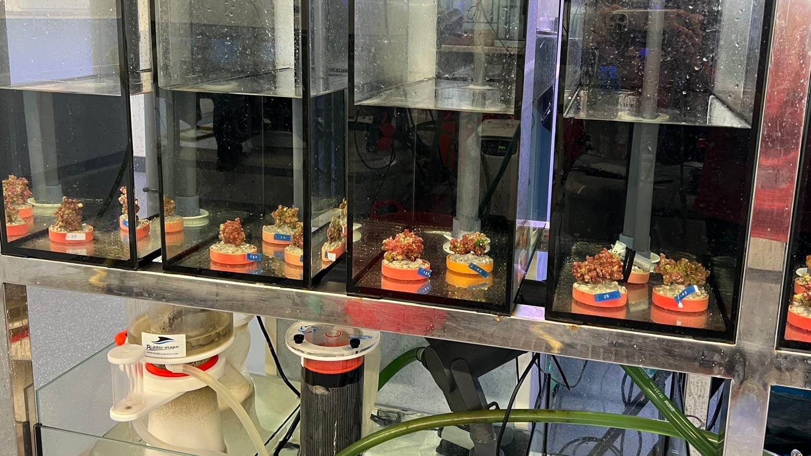 Algunas fotos del laboratorio durante el proyecto “Efectos del cambio climático sobre la reproducción y ciclo larvario de los bosques de coral negro constituidos por Antipathella wollastoni” y durante el muestreo para el experimento de Tubastraea, ambos en la Universidad de La Laguna.