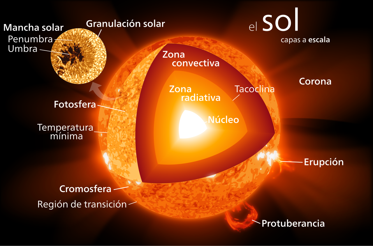 Capas solares. Crédito: https://es.wikipedia.org/wiki/Sol#/media/Archivo:Afiche_del_sol.svg