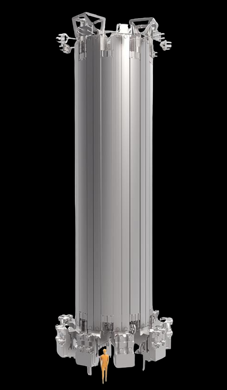 Alimentadores magnéticos. Conducen la corriente eléctrica y refrigerante desde las fuentes de alimentación criogénicas externas hasta las bobinas superconductoras.