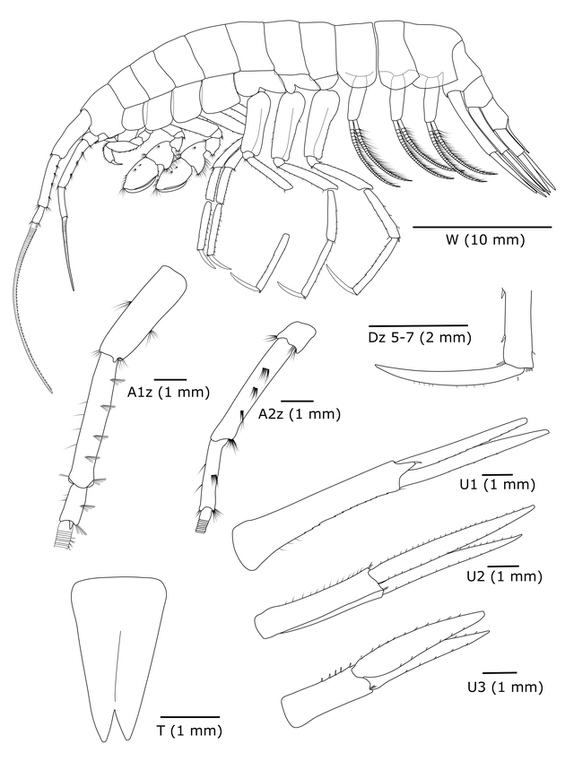 - Urópodo 3 subigual y telson con proporciones únicas (1,77), rasgos que no coinciden con los géneros previos.