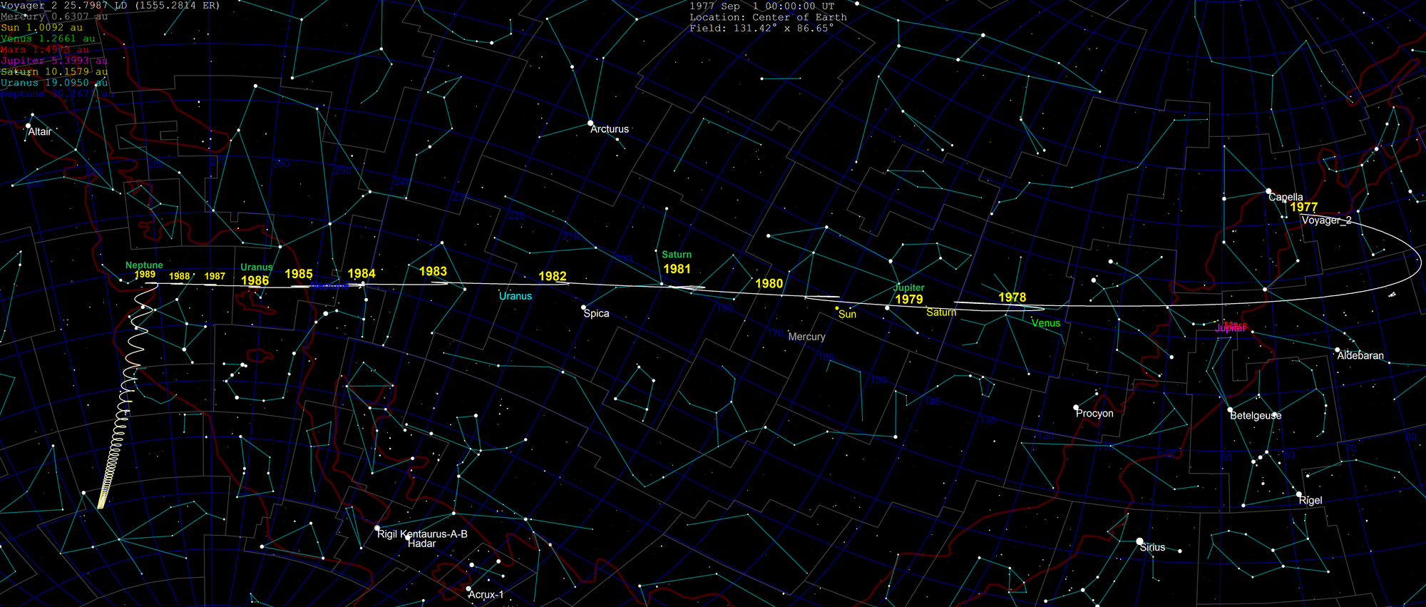| Octubre 1989 | Fin de la misión primaria (tras Neptuno). Comienzo de la misión extendida/interplanetaria. |