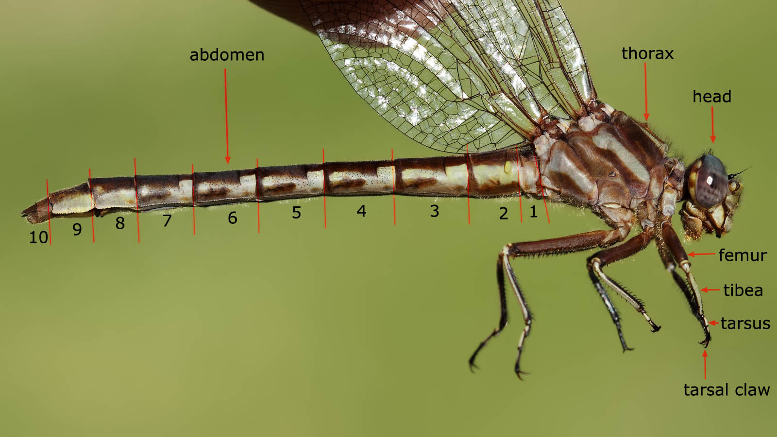 Anatomía de una libélula. Crédito de las fotografías: http://www.mndragonfly.info/html/learn/anatomy.html
