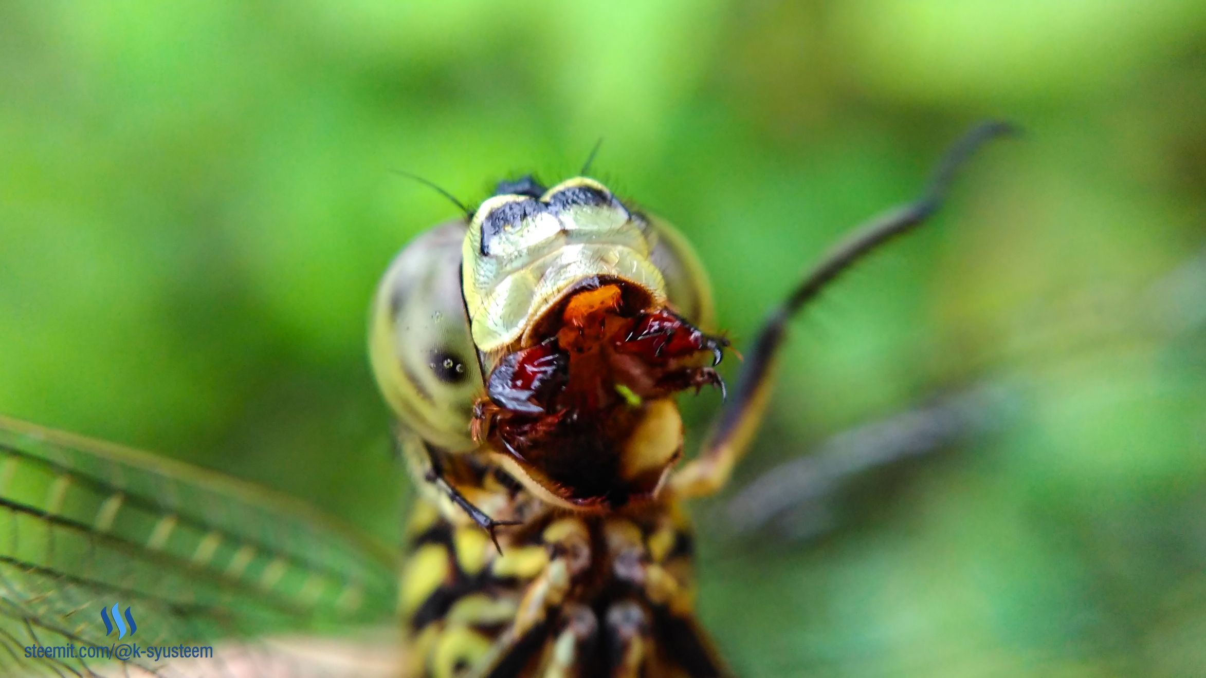 Fotografía donde se puede apreciar la boca de una libélula. Crédito: https://steemit.com/photography/@k-syusteem/closer-to-the-dragonfly