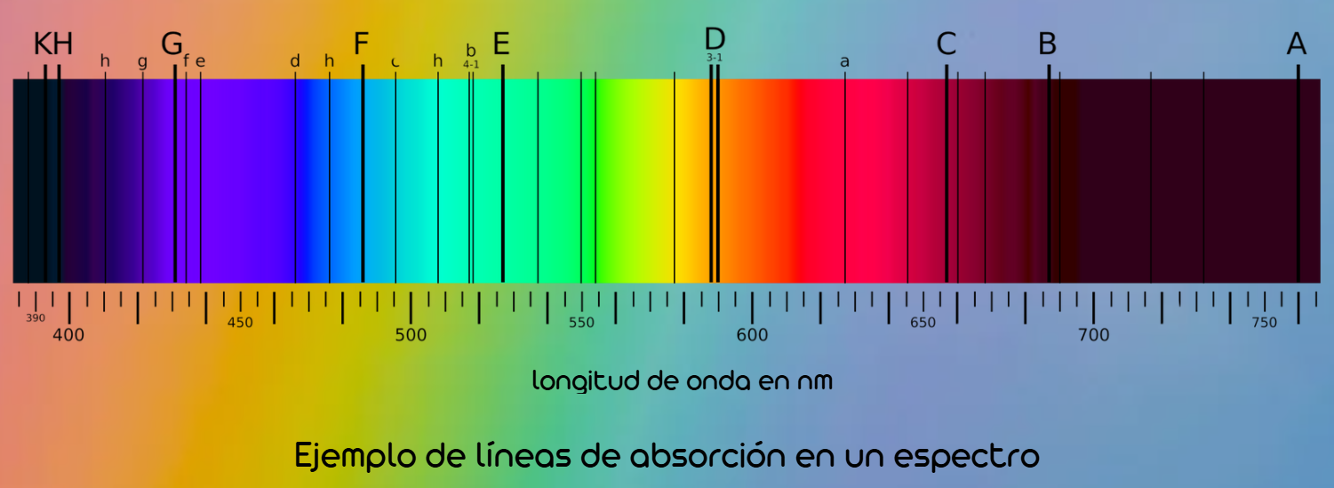 - Líneas de absorción: aparecen oscuras sobre un espectro continuo cuando los átomos absorben fotones en esas frecuencias exactas.