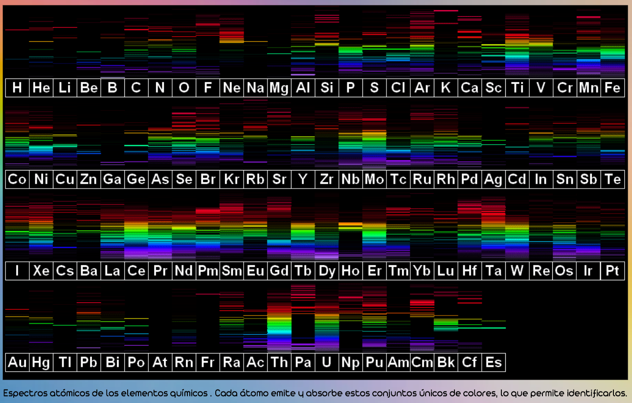En ambos casos, cada elemento químico tiene un patrón único de líneas: su “código de barras espectral”.