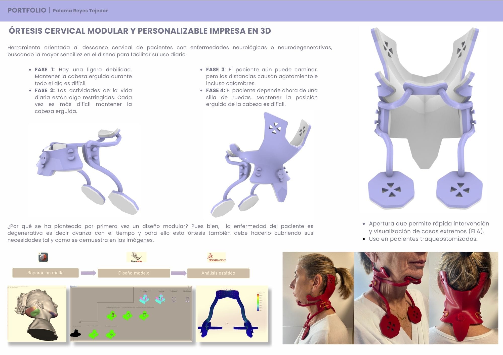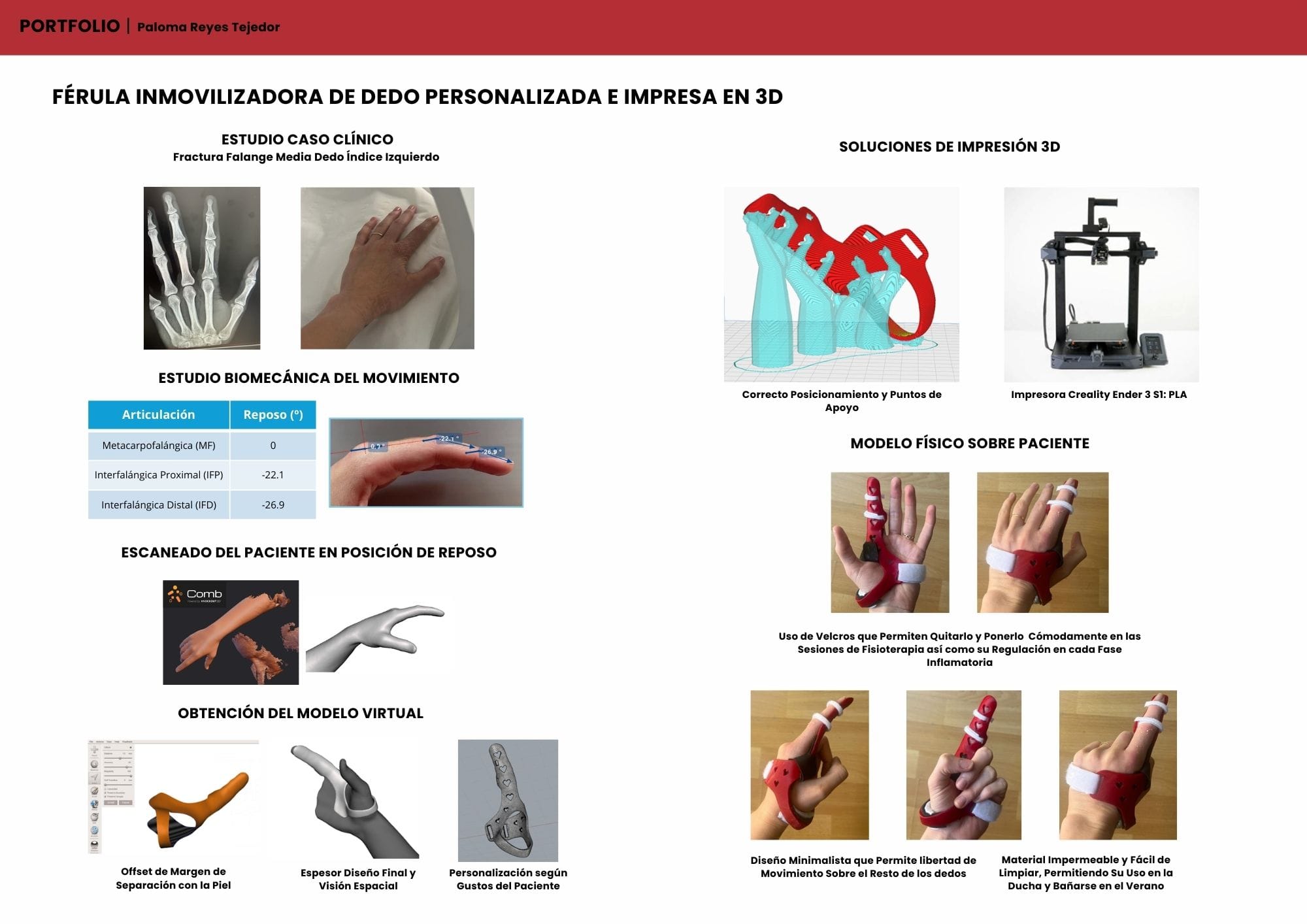 Empecé el máster en 2024, no hace tanto de ello, pero siento que estoy hecha para esto y es como si llevase toda la vida en ello. Personalización, bajos costes y respuesta inmediata: eso es el DISEÑO SOCIAL. Es lo que me permiten mi software de segmentación, mis herramientas de diseño y mi impresora. Hablar con médicos, entender sus "palabros", entrar en quirófano, colaborar con ONGs o desarrollar mi propia patente... es algo simplemente indescriptible.