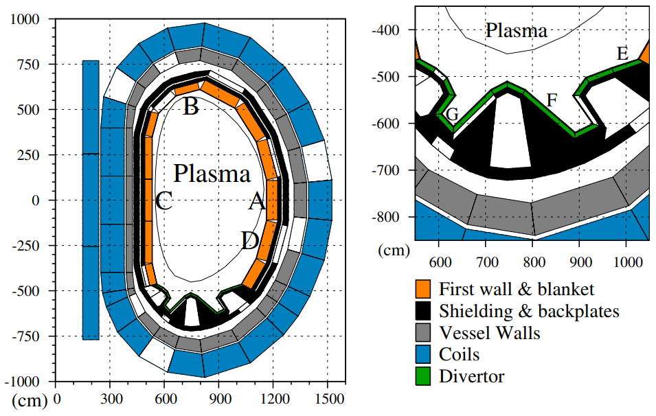 Figura 2. Una sección toroidal a través del modelo DEMO (DEMOnstrator power plant) simplificado y homogéneo utilizado en simulaciones MCNP para obtener flujos y espectros neutrónicos. Crédito: ITER.org
