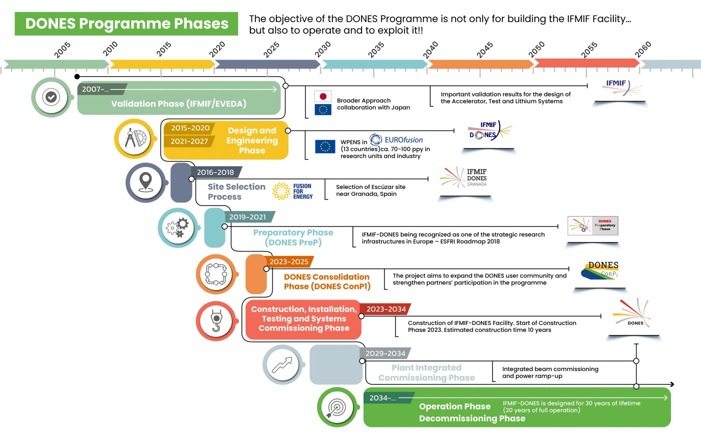 Para la consecución de estos objetivos entra en juego IFMIF-DONES (International Fusion Materials Irradiation Facility – DEMO-Oriented NEutron Source), que es el pilar de esta fase.